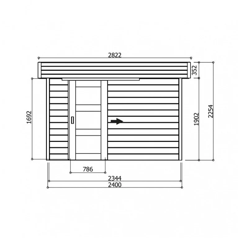 Abri de jardin Bergen – 2,43 x 2,05 m – sapin du Nord certifié – porte simple coulissante