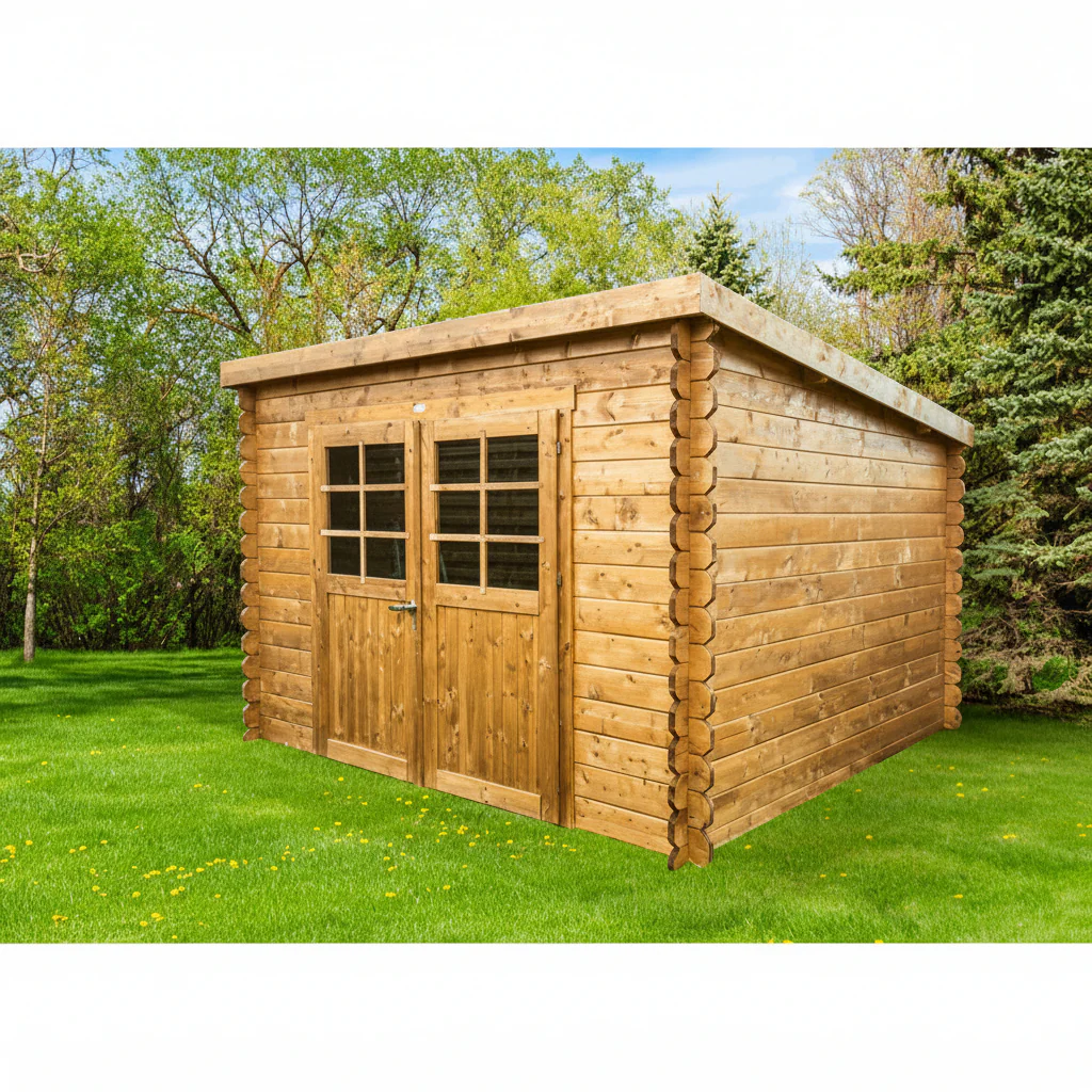 Abri de jardin Brest – bois imprégné – 2,98 x 2,98 m – sapin du Nord certifié – double-porte avec fenêtres
