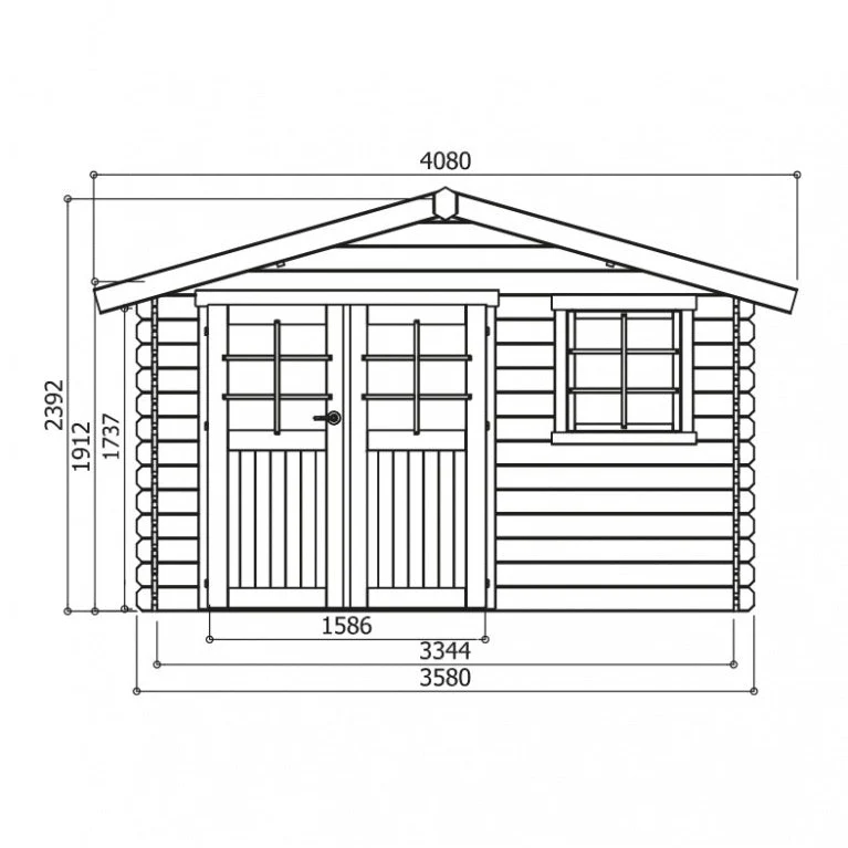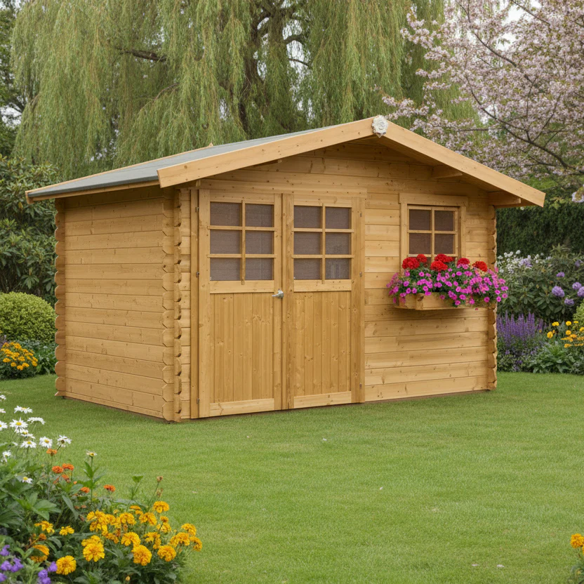 Abri de jardin Chimay – 3,58 x 2,98 m – sapin du Nord certifié – double-porte avec fenêtres