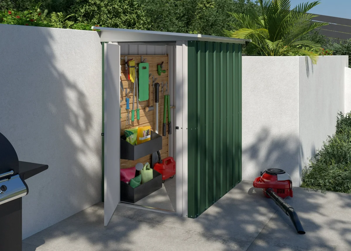 Optimisez votre espace extérieur avec cet abri de jardin en métal compact de 1,90 m². Conçu pour les petits jardins ou les zones restreintes, il offre une solution pratique pour ranger vos outils, vos équipements ou vos accessoires de jardin tout en occupant un minimum de place au sol. Sa teinte verte naturelle et ses éléments couleur alu assurent une intégration discrète dans votre environnement.