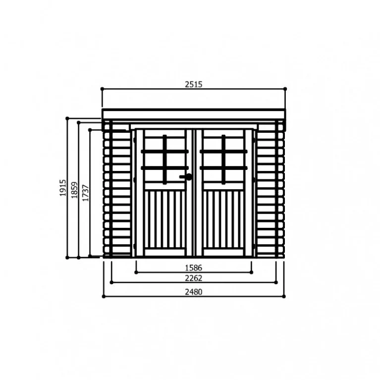 Abri de jardin Hof – 2,48 x 2,48 m – sapin du Nord certifié – toiture plate – double-porte avec fenêtres