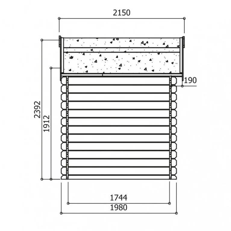 Profondeur hors débordement du toit 1,98 m