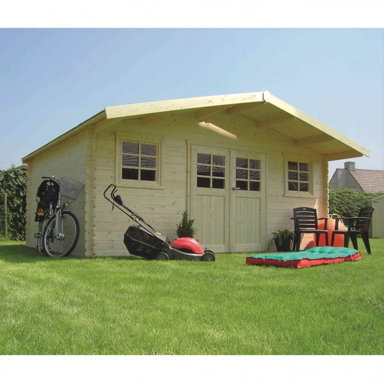 Abri de jardin Montreux – 5,08 x 5,08 – traité – sapin du Nord certifié – double-porte avec fenêtres