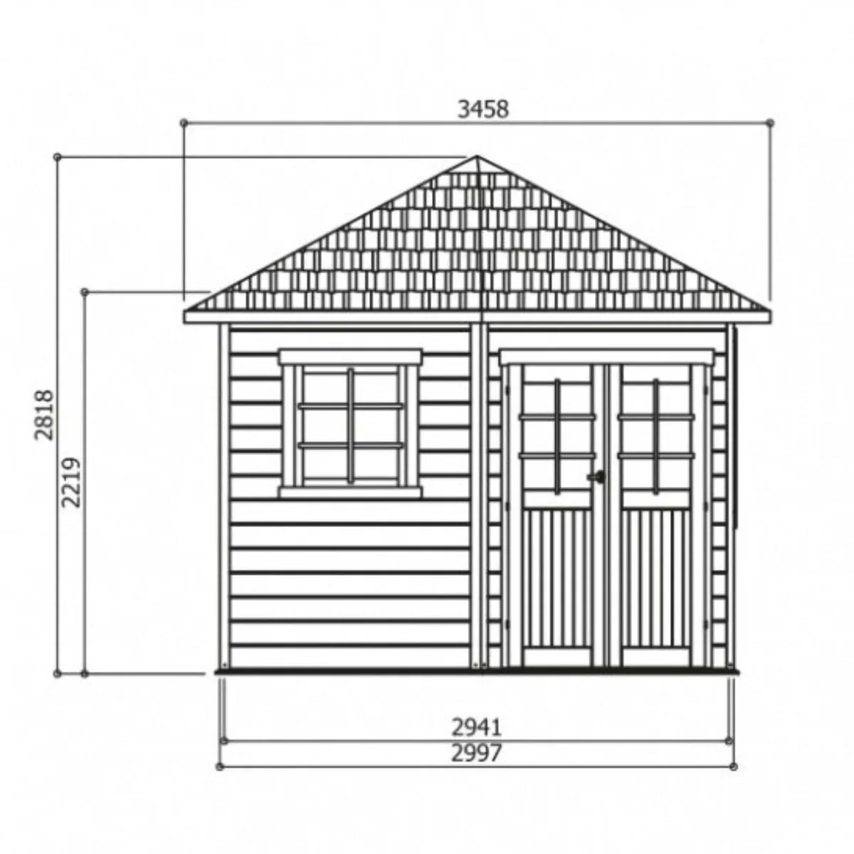 Abri de jardin Nancy – 3,05 x 3,05 m – sapin du Nord certifié – toiture pyramidale – double-porte avec fenêtres