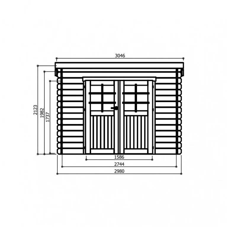 Abri de jardin Riom – 2,98 x 2,38 m – sapin du Nord certifié – toiture plate – double-porte avec fenêtres. -bois imprégné