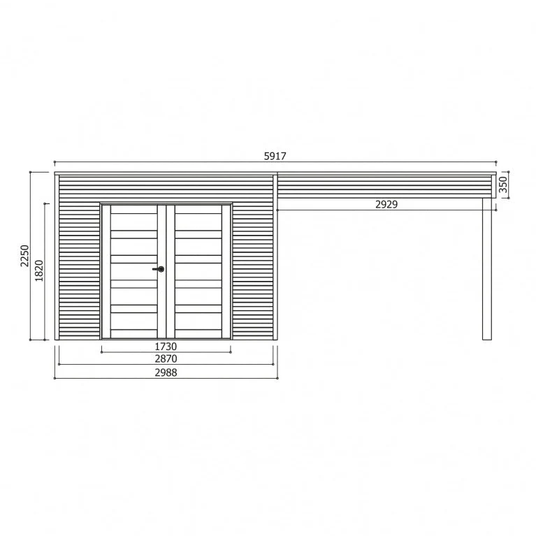 | Largeur avec débordement du toit | 5,917 m (abri 2,988 m + extension 2,929 m) |