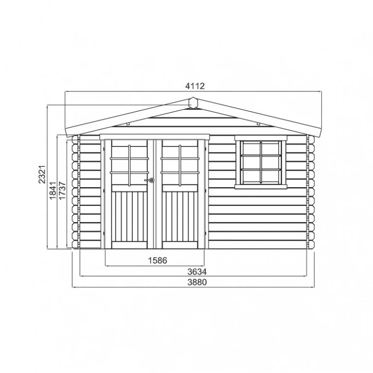 Abri de jardin Salzburg – 3,88 x 2,98 m – sapin du Nord certifié – double-porte avec fenêtres – bois imprégné