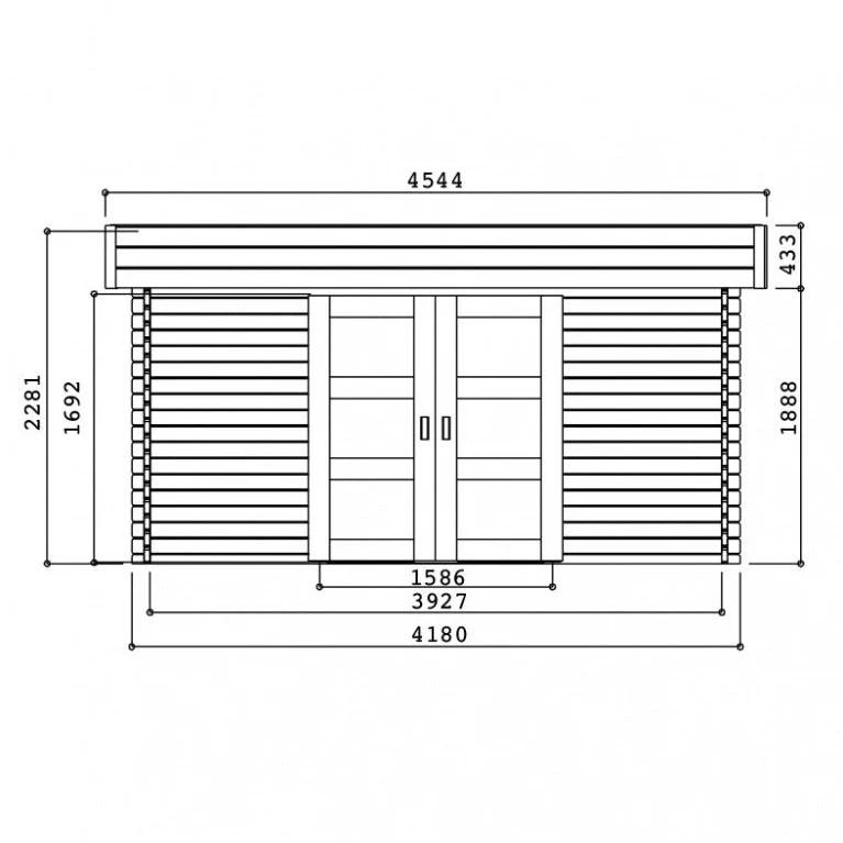 Abri de jardin Viborg – 4,18 x 3,28 – sapin du Nord certifié – toiture plate – double-porte coulissante avec fenêtres – bois imprégné