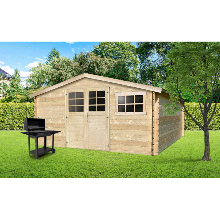 Abri de jardin Victor – 4,18 x 3,88 m – sapin du Nord certifié – double-porte avec fenêtres