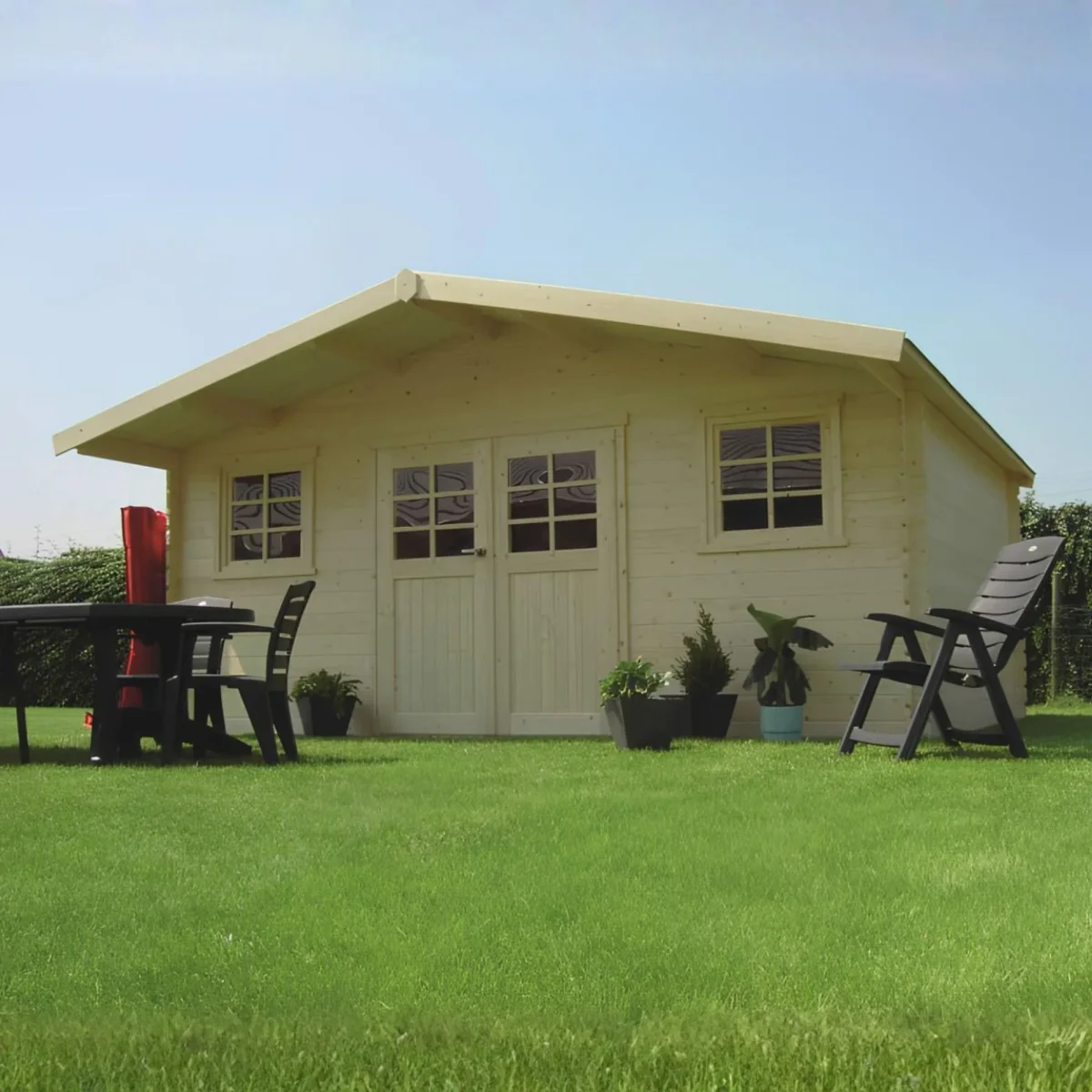 Abri de jardin Zürich – traité – 5,08 x 3,88 m – sapin du Nord certifié – double-porte avec fenêtres
