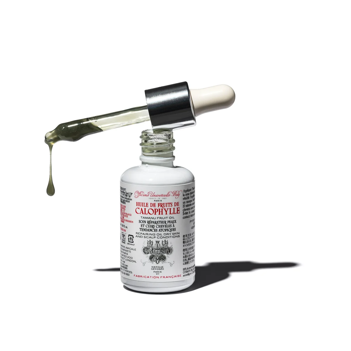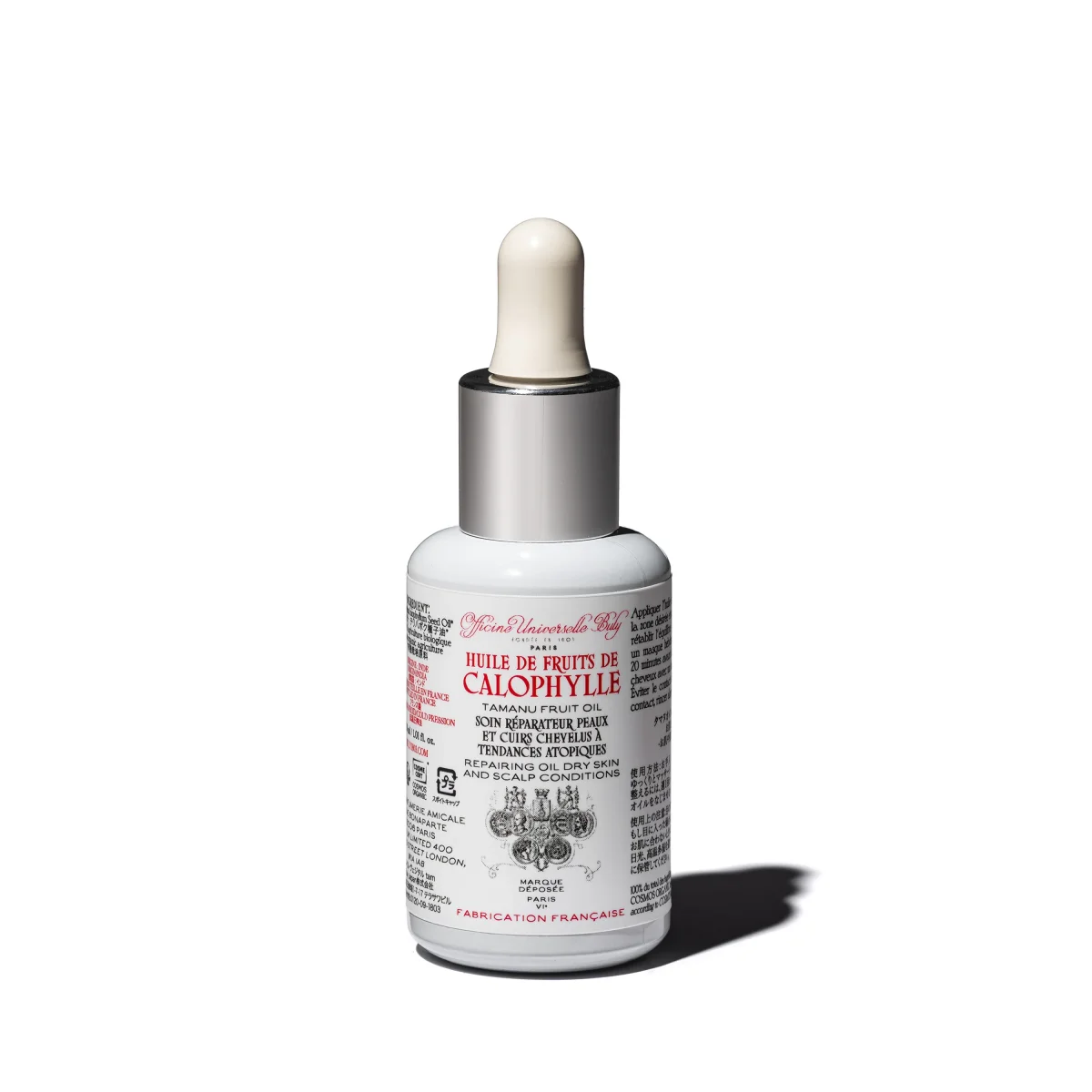 Souveraine pour prendre soin des peaux sensibles, l’huile de fruits de calophylle fait aussi merveille pour apaiser et renforcer les cuirs chevelus secs. Dense, elle s’apprivoise diluée dans une huile à la texture plus légère.