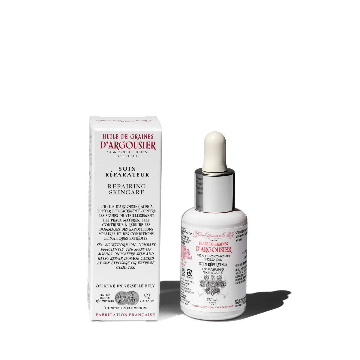 Les fruits et les graines de l’argousier contiennent plus de 18 acides aminés, des acides aminés gras essentiels, des phytostérols, mais également des minéraux et des oligoéléments. Une huile réparatrice incontournable dans les routines de soin des peaux matures.