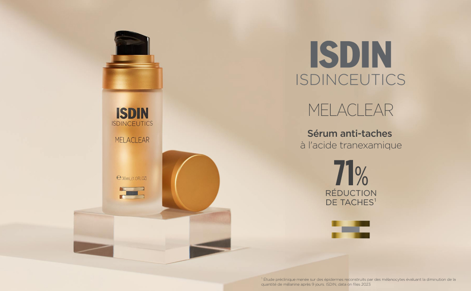 ISDIN Isdinceutics Melaclear Serum Anti-Taches 30ml est un soin dépigmentant intensif conçu pour réduire visiblement les taches brunes et unifier le teint. Grâce à sa formule innovante, il agit directement sur les irrégularités pigmentaires.