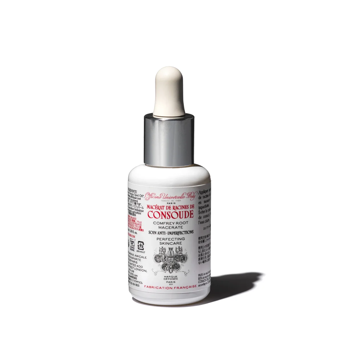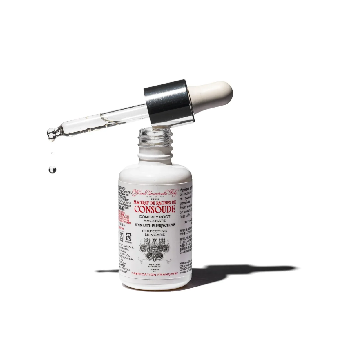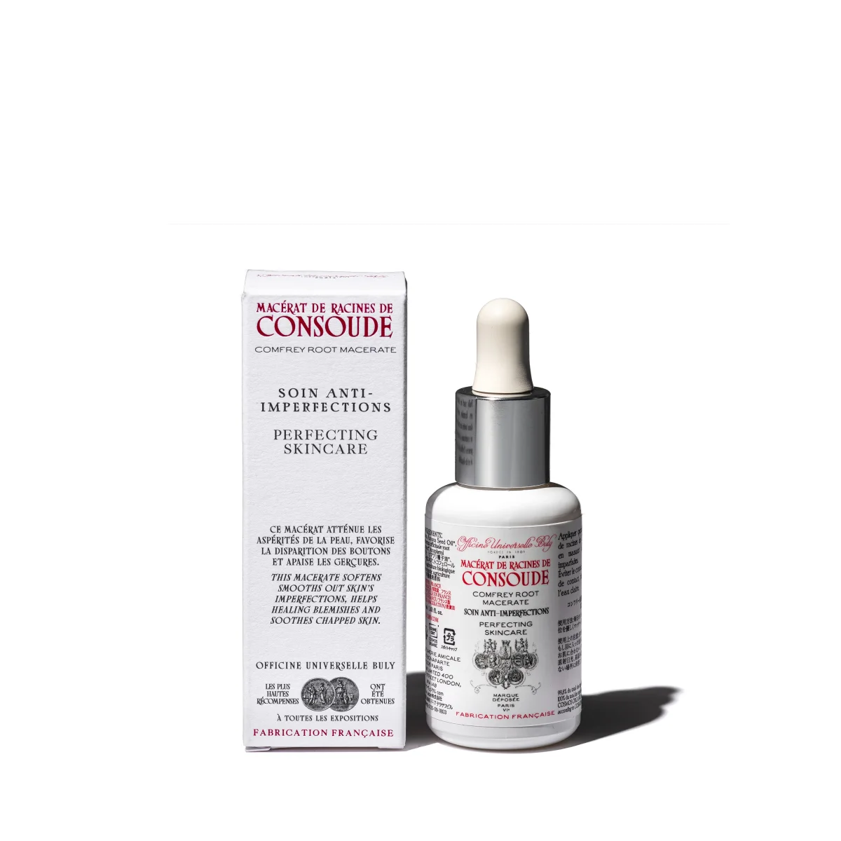 Ce macérât rare est remarquablement efficace pour le soin des peaux adolescentes ou sujettes aux imperfections grâce à ses propriétés régénérantes. La peau redevient lisse, les rougeurs et les boutons s’atténuent. L’allantoine, présente dans ce macérat et dans la célèbre bave d’escargot, est un actif cosmétique apaisant, au fort pouvoir réparateur. Elle active la production de collagène pour renouveler les cellules de la peau, accélérer la réparation de la peau et améliorer sa capacité à retenir l’eau. La présence de la vitamine B12 stimule également ce renouvellement cellulaire.