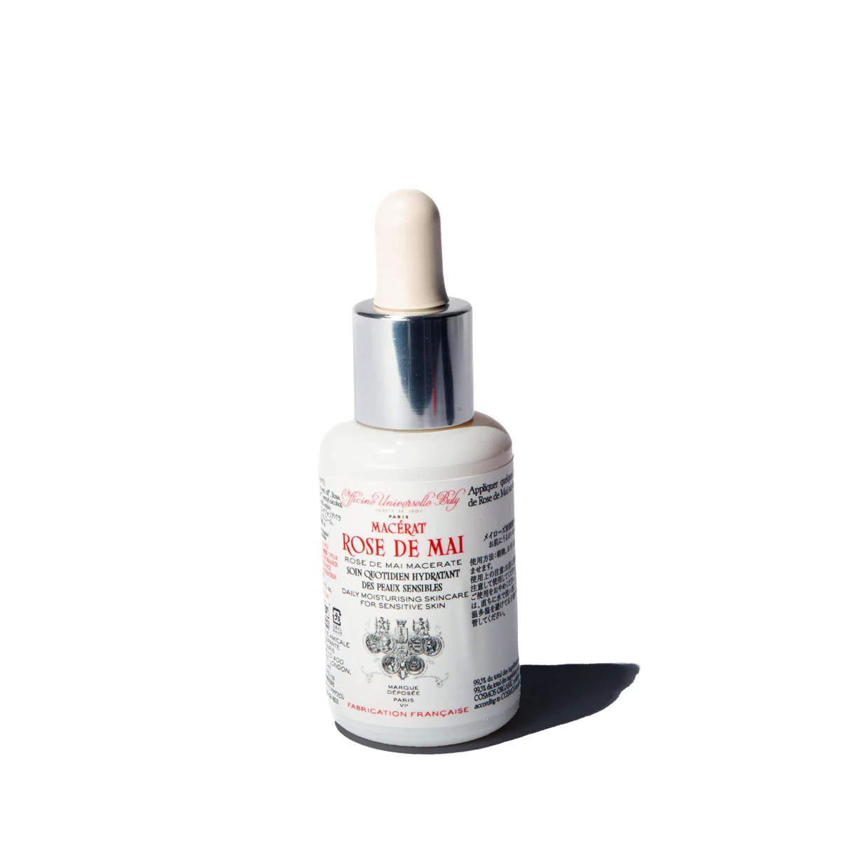 Cette rose précieuse est cultivée en Provence et ses pétales sont ramassées dès le petit matin et mis à macérer dans de l’huile de jojoba équilibrante.