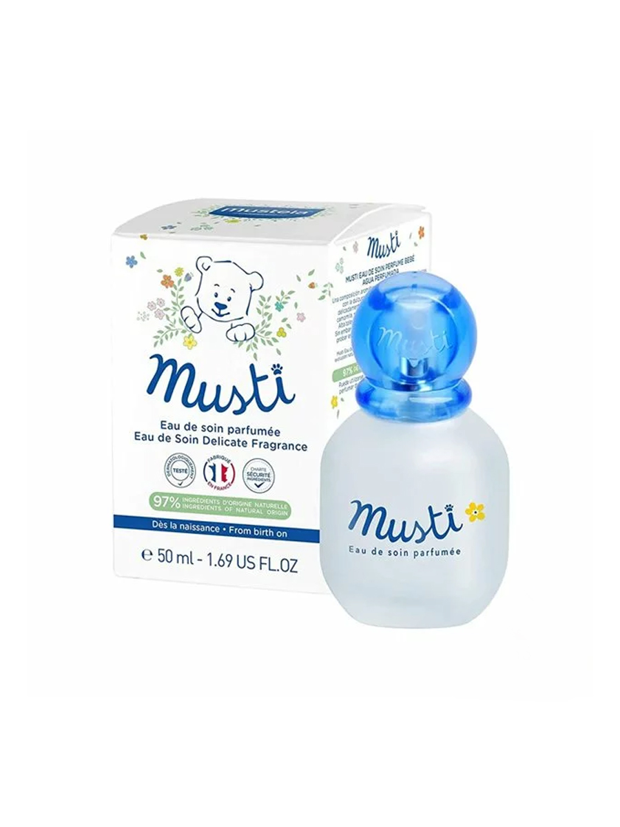 Parfumez avec Musti Eau de Soin la nuque et les cheveux de votre bébé.