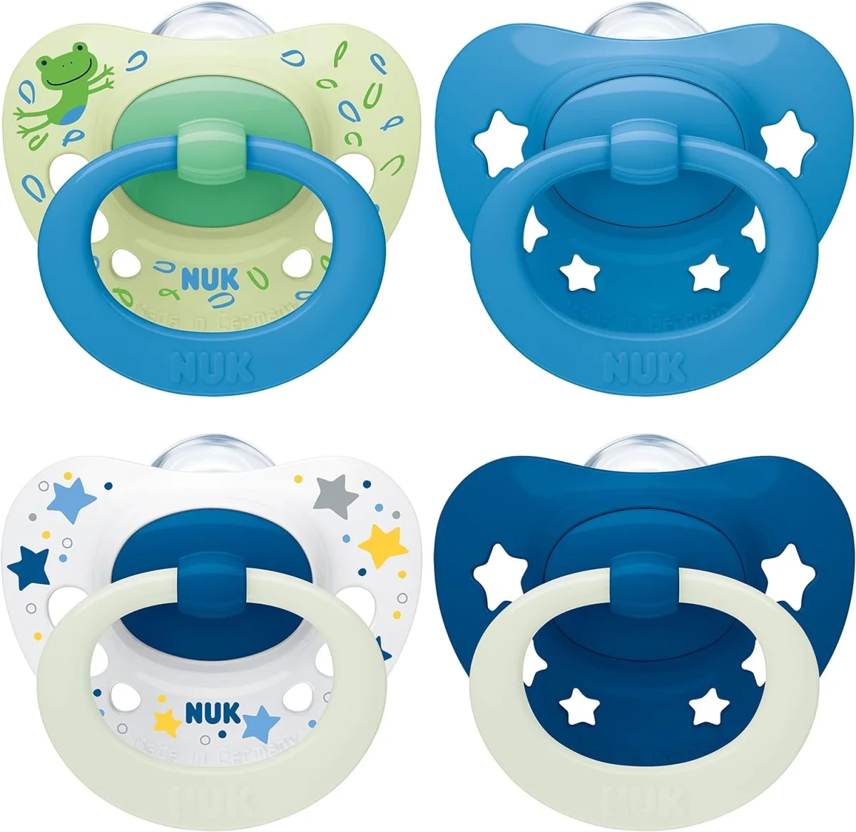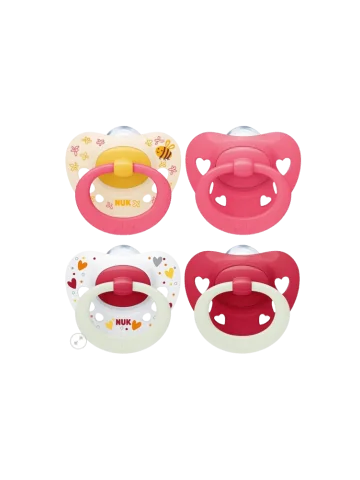 NUK Sucette Signature Day & Night pour bébé 18-36 mois apaise 95 % des bébés, sucettes en silicone sans BPA, en forme de cœur, Brille dans le noir
