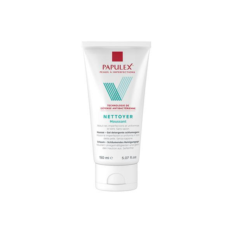 PAPULEX Gel Nettoyant Moussant 150ml élimine l’excès de sébum et les impuretés tout en respectant la peau. Idéal pour les peaux à tendance acnéique et sensibles. Achetez-le en parapharmacie Tunisie ApexPara.