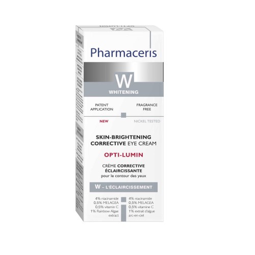 PHARMACERIS WHITENING OPTI LUMIN est une crème contour des yeux correctrice et éclaircissante conçue pour le soin quotidien des zones sombres et fatiguées du regard. Elle cible efficacement les cernes, les taches brunes et les poches sous les yeux tout en lissant les rides et en améliorant l’élasticité de la peau.