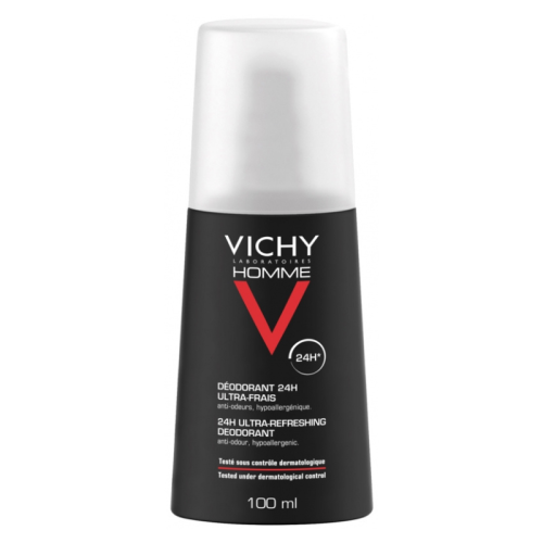 Le Déodorant Ultra-Frais 24H de Vichy Homme est spécialement conçu pour les hommes à la peau sensible. Grâce à sa formule enrichie en agents déodorants et antibactériens, il offre une protection anti-odeurs efficace pendant 24 heures, tout en procurant une sensation de fraîcheur intense.