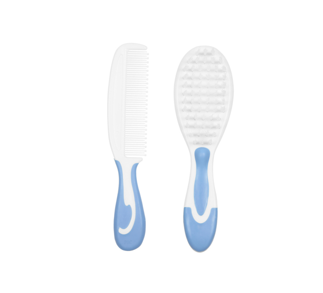 Cet ensemble de peignes est utilisé chez les nouveau-nés. Il masse le cuir chevelu sensible du bébé. Les extrémités arrondies ne blesseront pas la peau du bébé. Il est facile à tenir et léger grâce à sa large poignée.